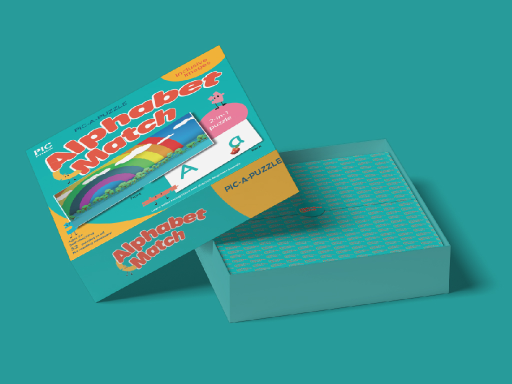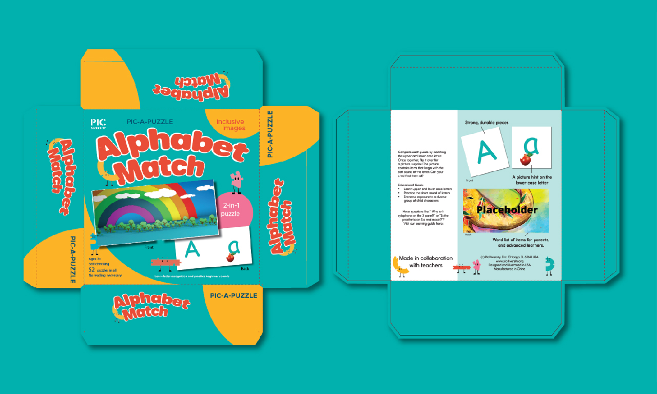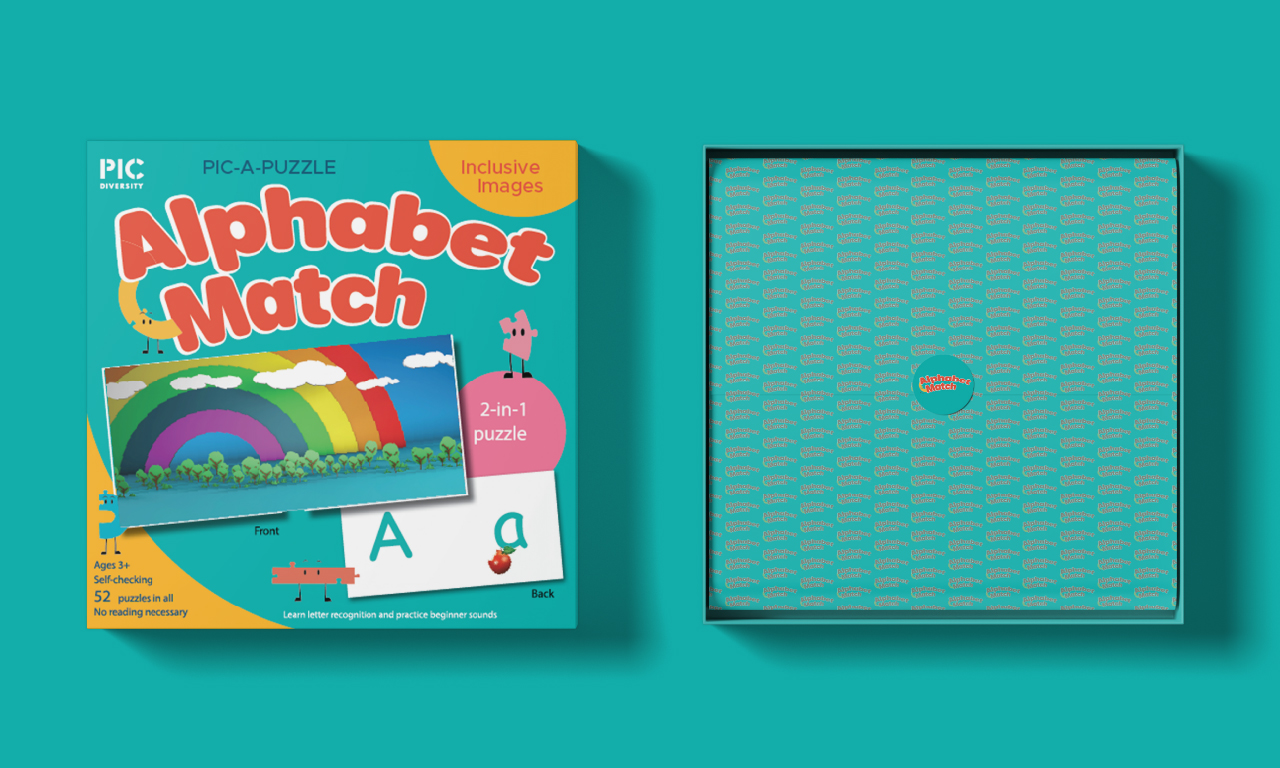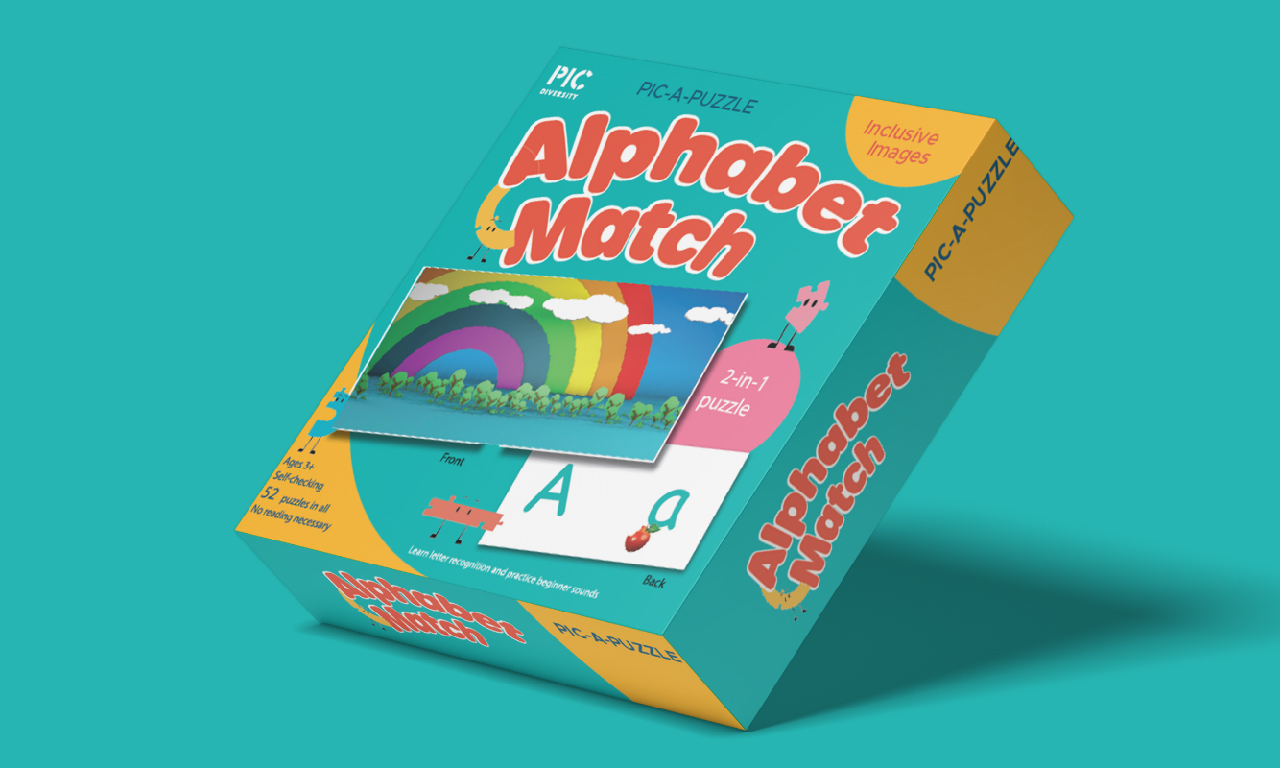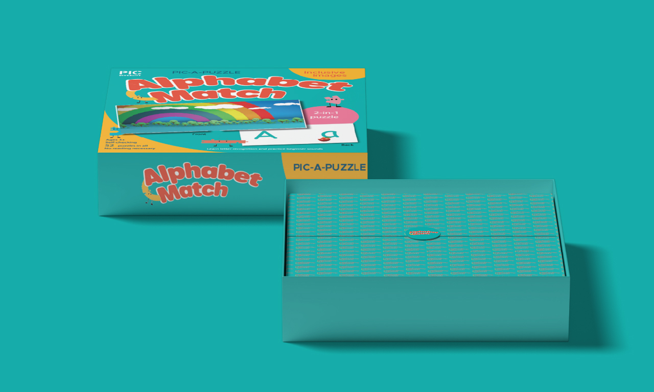 The Alphabet Match puzzle box was crafted as an educational tool to engage young children in letter recognition and beginner sound practice. Designed with vibrant visuals and inclusive images, this 2-in-1 puzzle encourages learning through play.